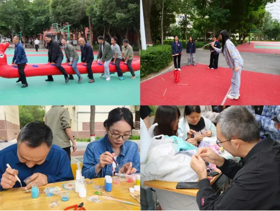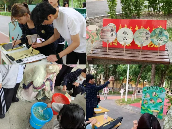 文化体验区活动精彩纷呈、亮点频出。旱地龙舟赛中,师生同台竞技展现“同舟共济”的团结协作精神;非遗漆扇和掐丝珐琅制作中,师生们亲身感受非遗文化的独特魅力;射五毒、投壶、猜字谜等活动让大家感受到传统文化的智慧与趣味,使传统节日的氛围更加浓厚;缝香囊、系五彩绳时,大家共同祈愿伟大祖国国泰民安。