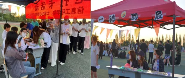 活动现场,夜幕下的足球场被点点荧光点亮。同学们在入口处领取《通关任务卡》,正式开启趣味打卡之旅。
